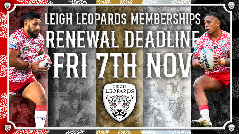 Leigh Leopards Home Page 2024 Last Match Away Wigan Warriors18 Leigh Leopards6 Fri 3 Oct Match Report News IMPORTANT Membership Renewal DEADLINE November 6, 2025 Read More » A knockout give-away October 30, 2025 Read More » Leigh Leopards Announce Club Record Apparel Partnership October 30, 2025 Read More » Operational Board Announcement – Membership Policy Reminder October 27, 2025 Read More » WELCOME TO LEIGH LEOPARDS LIAM HORNE October 24, 2025 Read More » Membership Update: Adjustments and First-Time Members October 23, 2025 Read More » WELCOME TO LEIGH LEOPARDS ADAM COOK October 23, 2025 Read More » The A Team Hub October 23, 2025 Read More » Load More leopards tv+ The A Team Hub October 23, 2025 Watch Now » Innes Senior | The First Interview October 18, 2025 Watch Now » Jonny Marsh & Owen Trout | Kick-off to Cook-off October 16, 2025 Watch Now » Full Match | Wigan Warriors | Play-Offs October 6, 2025 Watch Now » Derek Beaumont Lokie Lam Extension Interview October 4, 2025 Watch Now » Lokie Lam Contract Extension Interview October 4, 2025 Watch Now » Highlights | Wigan Warriors | Play-Offs October 4, 2025 Watch Now » Adrian Lam | Wigan Warriors | Press Conference October 4, 2025 Watch Now » Load More