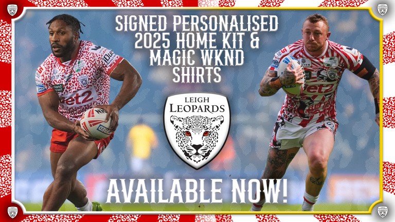 Leigh Leopards Home Page 2024 Last Match Away York Valkyrie Leigh Leopards Fri 17 Apr Match Report Next Match Home Huddersfield Giants Thu 23 Apr - 20:00 01 days 07 hrs 57 mins 40 secs Buy Membership News Andrew Henderson discusses joining Leigh Leopards April 22, 2026 Read More » Leigh Leopards appoint a new Director of Rugby April 22, 2026 Read More » Adam Cook | Huddersfield Giants | Preview April 20, 2026 Read More » Signed and personalised 2025 Home & Magic Weekend Shirts April 20, 2026 Read More » Adrian Lam | Huddersfield Giants | Preview April 20, 2026 Read More » FULL MATCH | York Knights | Round 8 April 20, 2026 Read More » LEOPARDS VS GIANTS DOUBLE HEADER! April 20, 2026 Read More » HIGHLIGHTS | York Knights | Round 8 April 18, 2026 Read More » Load More leopards tv+ Andrew Henderson discusses joining Leigh Leopards April 22, 2026 Watch Now » Adam Cook | Huddersfield Giants | Preview April 20, 2026 Watch Now » Adrian Lam | Huddersfield Giants | Preview April 20, 2026 Watch Now » FULL MATCH | York Knights | Round 8 April 20, 2026 Watch Now » HIGHLIGHTS | York Knights | Round 8 April 18, 2026 Watch Now » Adrian Lam | York Knights | Round 8 | Post Match Press Conference April 17, 2026 Watch Now » Josh Charnley | York Knights | Round 8 | Reaction April 17, 2026 Watch Now » AJ Towse | York Knights | Round 8 | Reaction April 17, 2026 Watch Now » Load More