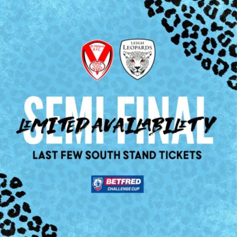 Have you secured your ticket yet? If not… WHY NOT? There are only limited South Stand tickets left for our Semi Final clash with Saints. Do not miss out!