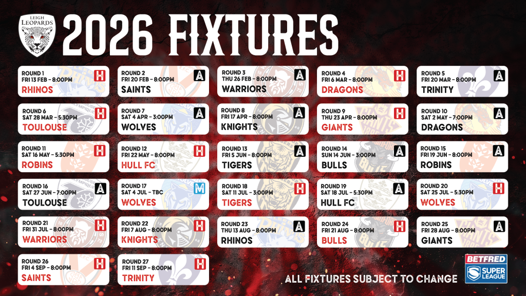 Leigh Leopards are proud to reveal the club’s Betfred Super League fixtures for the 2026 season.