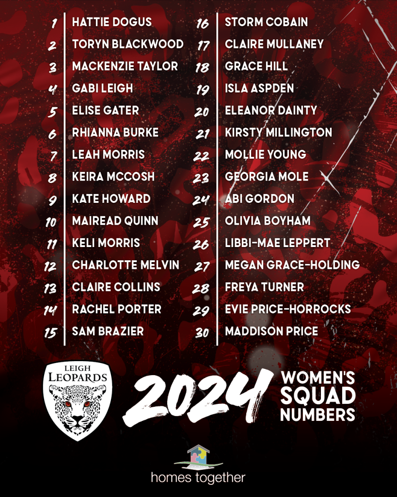 Leigh Leopards are delighted to confirm the Women’s team squad numbers ahead of the 2024 season