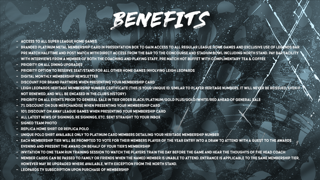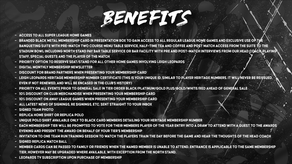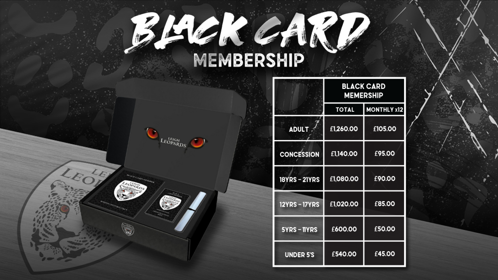 Leigh Leopards are pleased to issue this important Membership Update which includes details of limited availability in Platinum Card and Black Card Memberships.