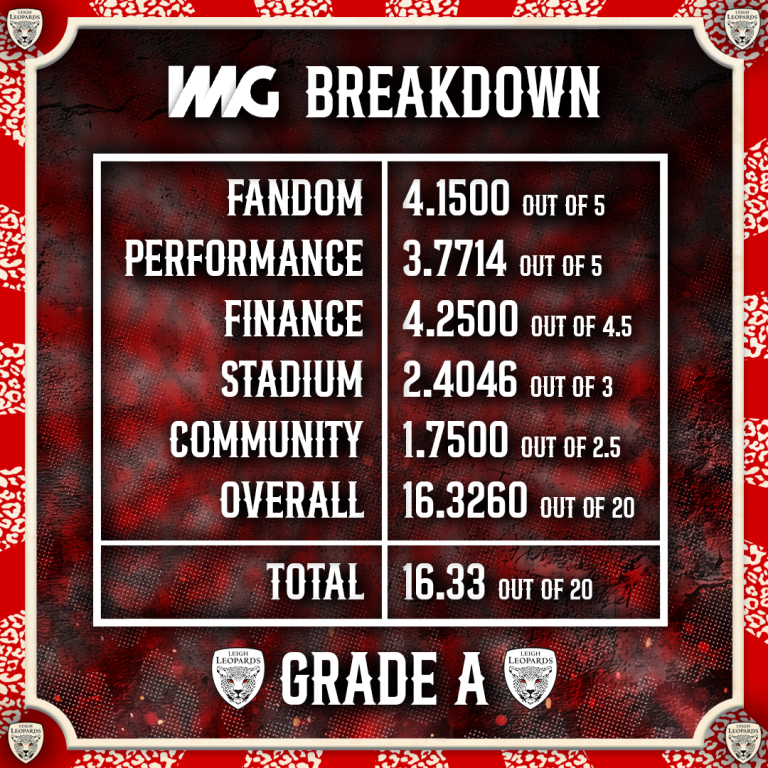 Leigh Leopards are delighted to confirm that the Club has retained Grade A status in the RFL and IMG grading process with a significantly improved score, thus securing our status in the Betfred Super League for the 2026 season.