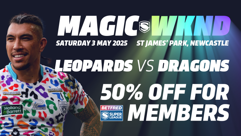 “We’ve got a tough test in taking on the Dragons, but I know me and the lads will be doing all we can to maintain our undefeated status in Magic Fixtures. We’ve always taken a strong following to Magic and I really hope fans will grab tickets early to help cover Newcastle in Leopard print”
