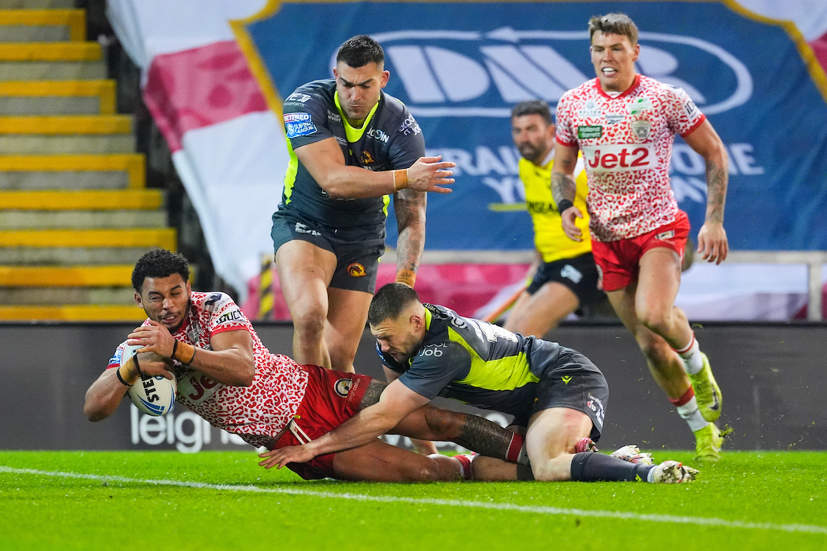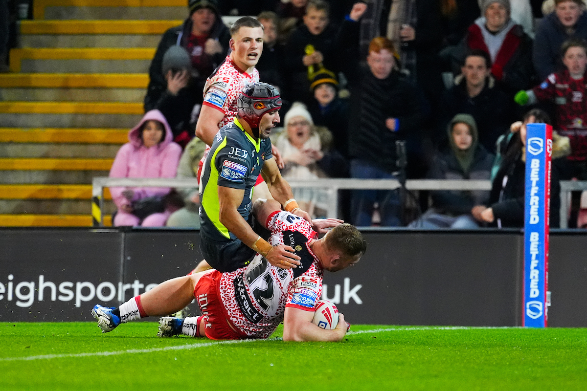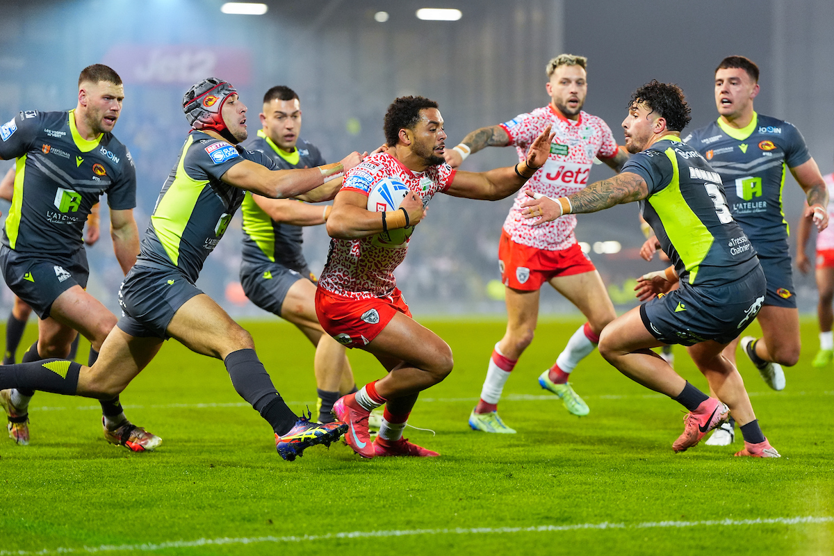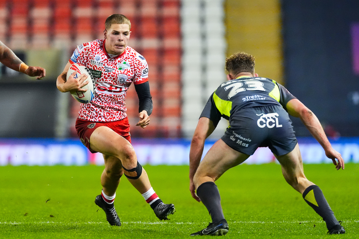AJ Towse came in for his Super League debut at late notice- so late his parents were unable to get back from a holiday in France to witness it. Named as the Leopards’ best performer in preseason training, the former York Knights wing handled the occasion nervelessly and was unfazed opposing the highly decorated and dangerous Tommy Makinson.