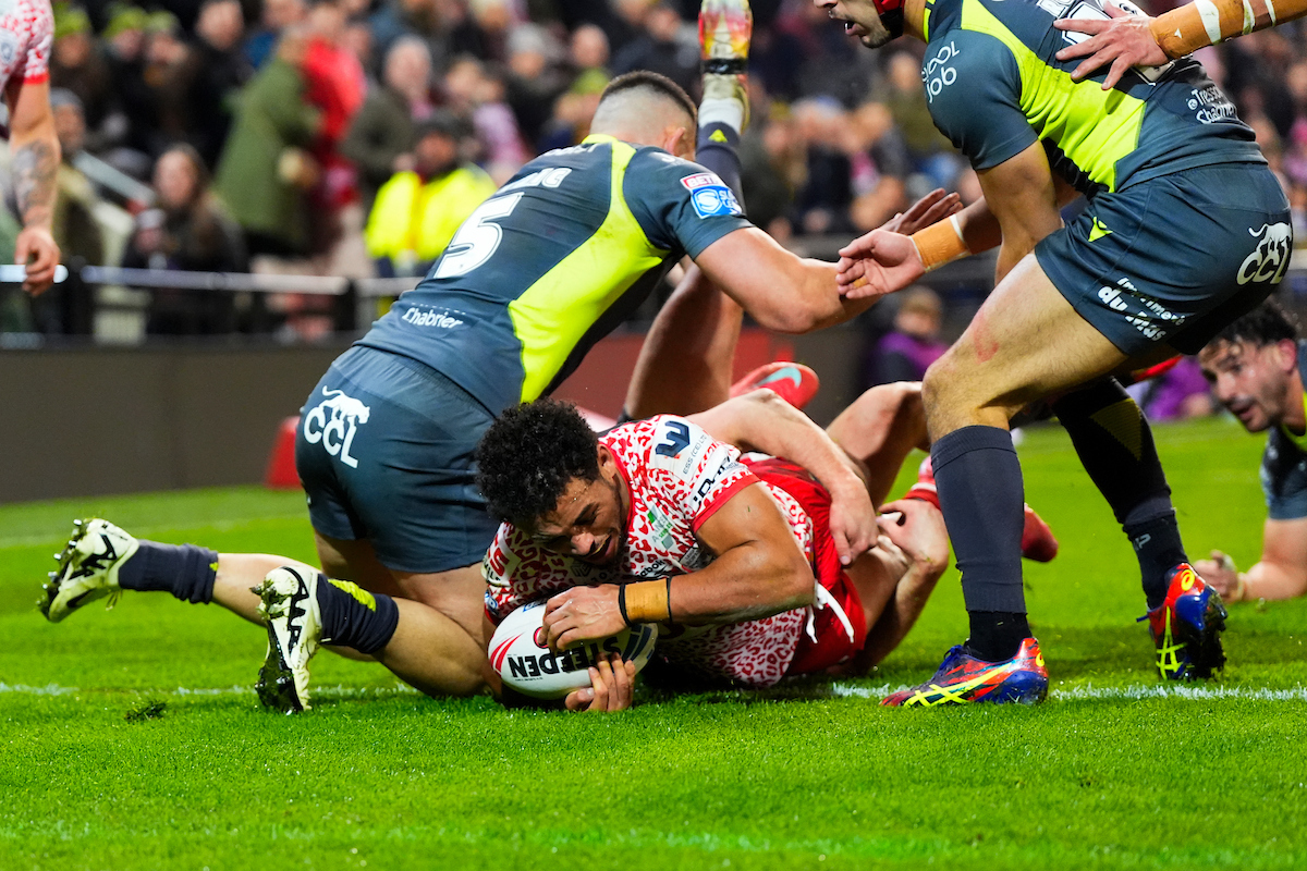 18 Cesar Rouge; 2 Tommy Makinson, 23 Matthieu Laguerre, 3 Arthur Romano, 5 Nick Cotric; 6 Luke Keary, 4 Reimis Smith, 16 Romain Navarette, 9 Ben Garcia, 10 Julian Bousquet, 17 Bayley Sironen, 12 Elliott Whitehead, 13 Oliver Partington