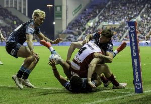 Leopards’ scrambling defence in the first half and their resolve and organisation was admirable as treble winners Wigan tested them with every trick in the book. Armstrong was brilliant under the high ball as Harry Smith went through his kicking repertoire, Keanan Brand and Umyla Hanley combined to superbly stop Jake Wardle’s burst for the line. The brilliant Bevan French was largely contained and Jai Field’s every move countered by a textbook defence.