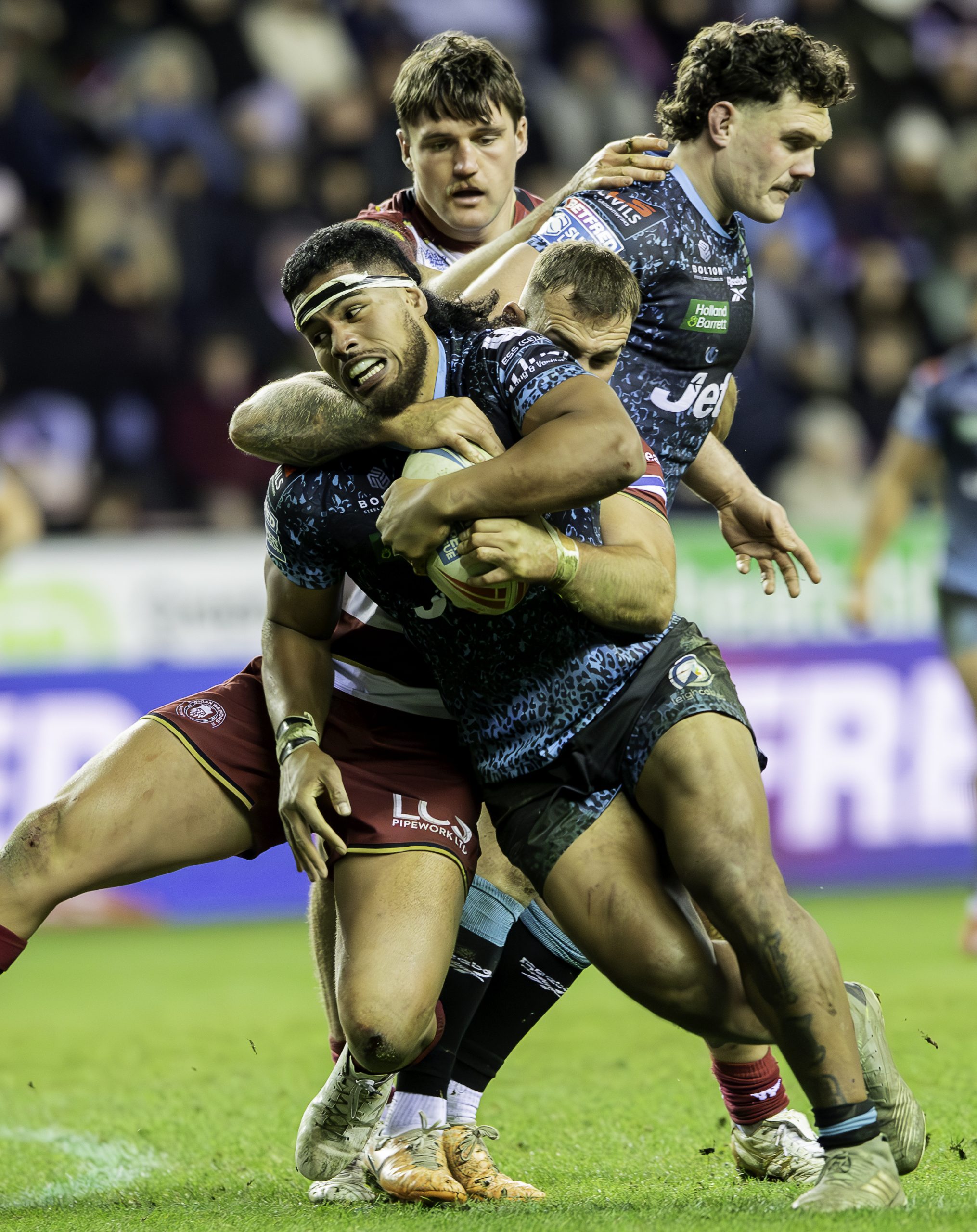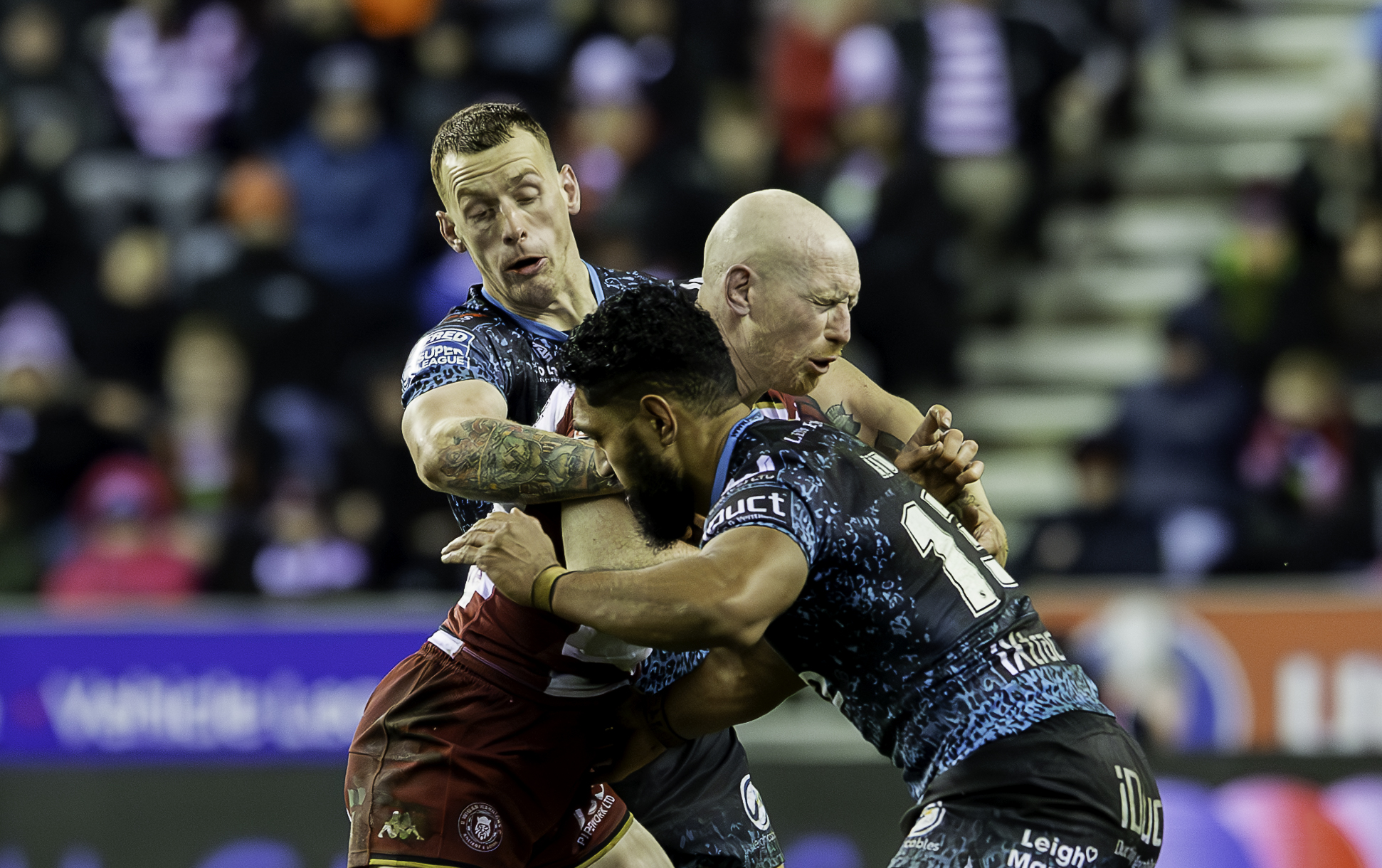 A parade of past players from Leigh and Wigan, live music from The Lathums, lasers and pyrotechnics in the build-up all contributed to the big match feel, as the stands filled up long before kick-off. With Wigan due to play Warrington in Las Vegas soon, legendary boxing announcer Michael Buffer added American razmataz, as he welcomed the teams to the field.