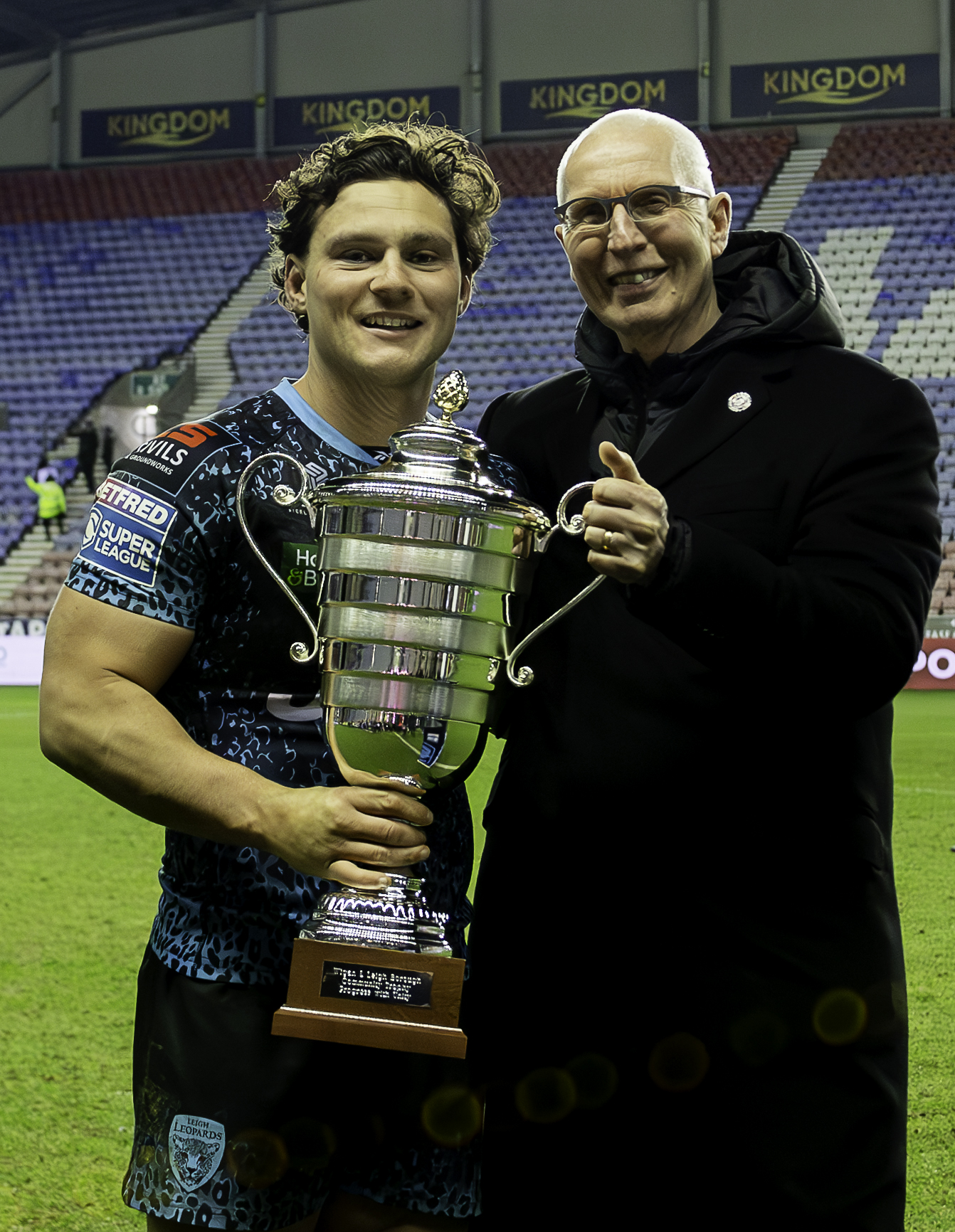The stadium had all but emptied, the chants of the departing Leythers hanging in the night air, as Lam received the Wigan & Leigh Community Trophy in front of the main stand.