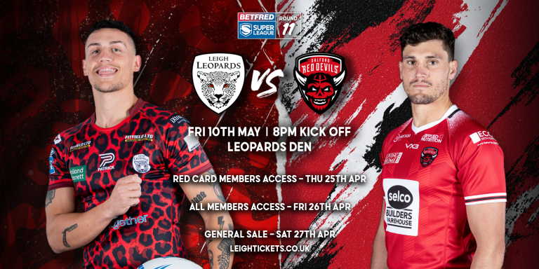 The Salford Red Devils are coming to the Leopards Den and Red Card Members have exclusive access to redeem their membership for a ticket from 9am Thursday 25th April. All other members will then have a 24 hour exclusive window on Friday to purchase additional tickets before general sale on Saturday.