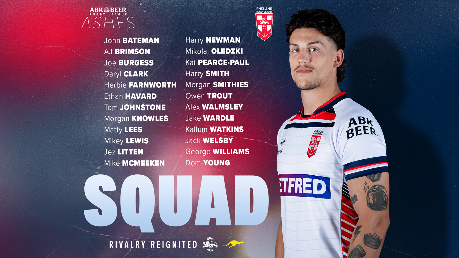 Head Coach Shaun Wane said: “I’m really excited by the 24 players we have selected ahead of this upcoming Ashes Series.