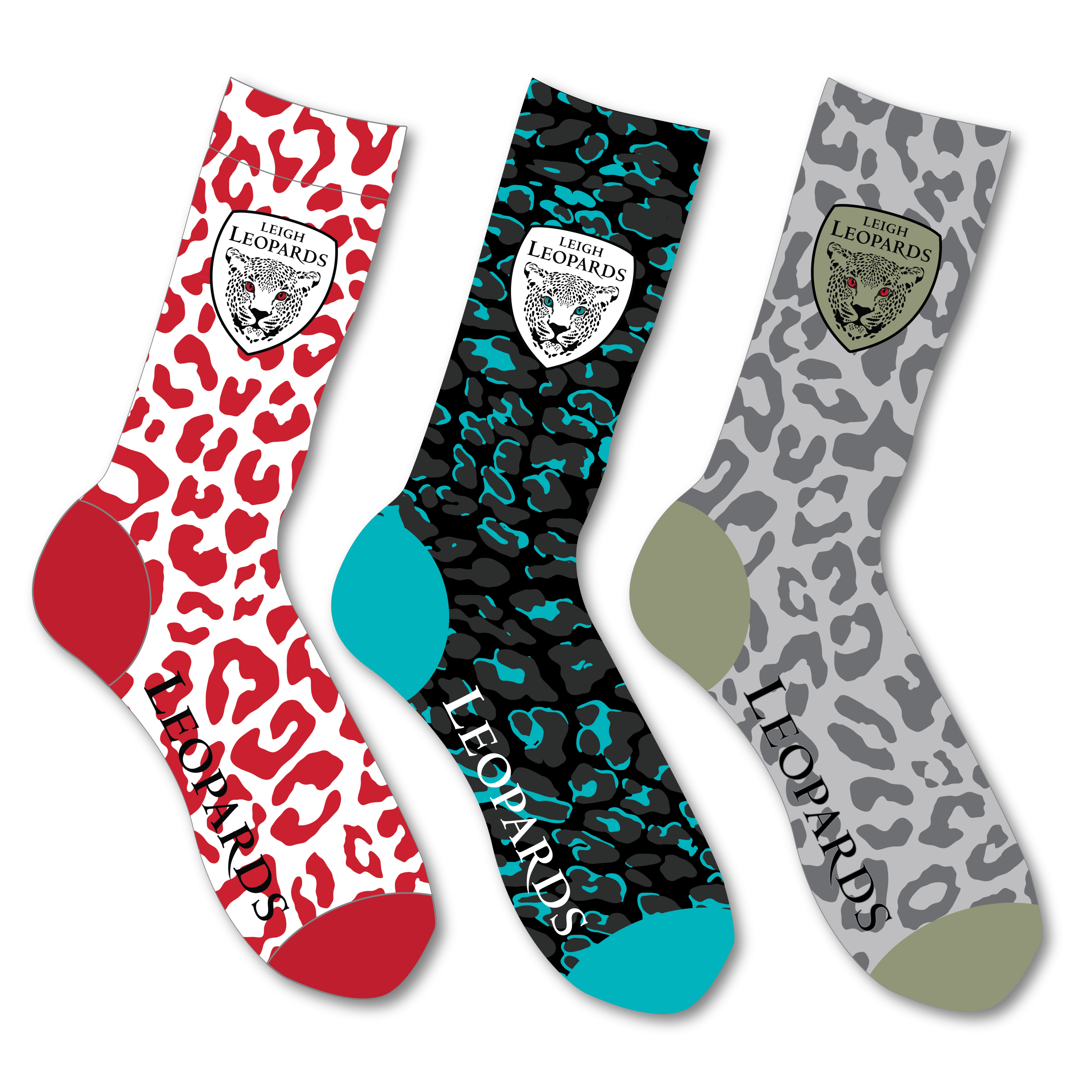 Each pair features the Leigh Leopards crest