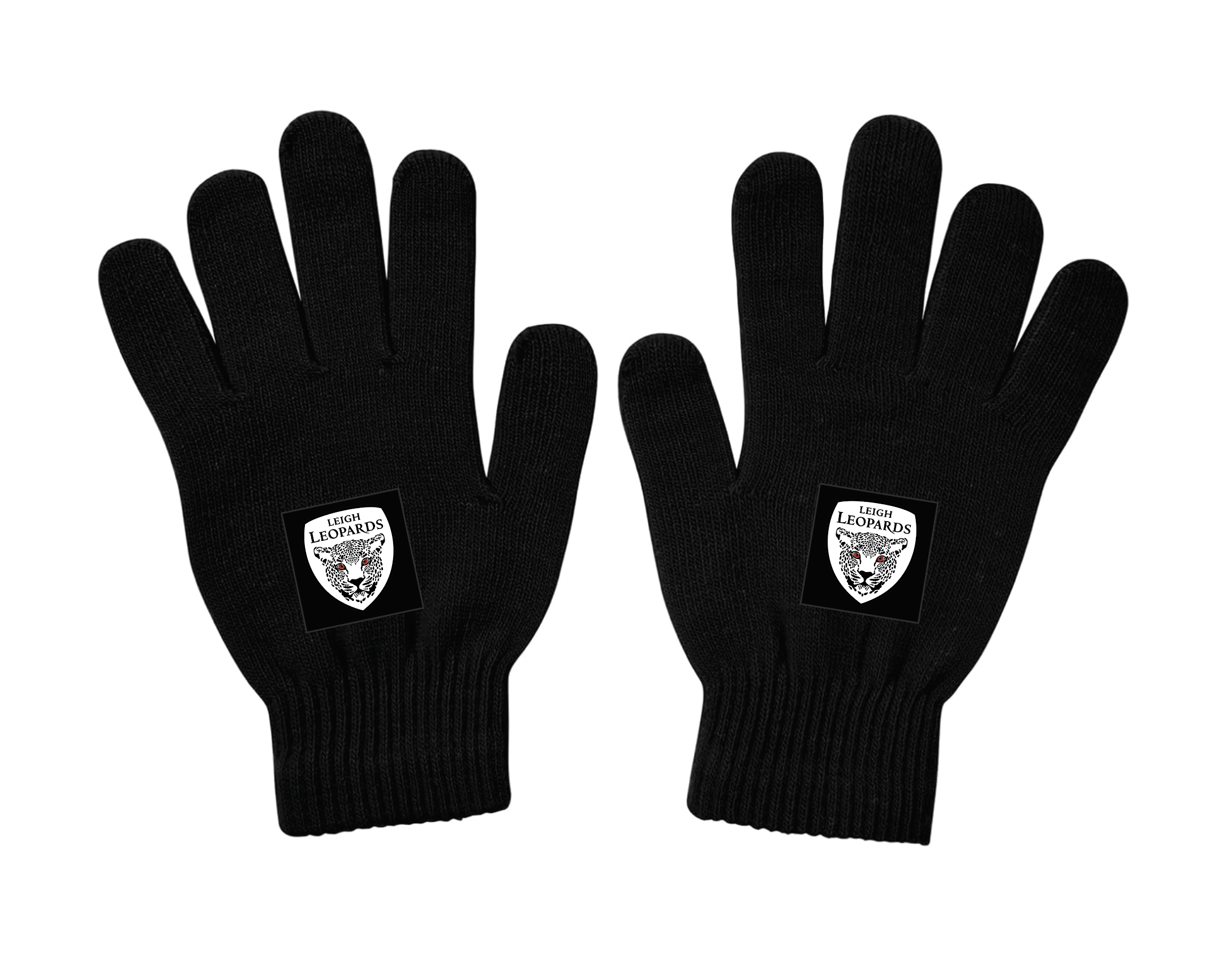 Keep warm while showing your team pride with the official Leigh Leopards Gloves. Featuring the club’s crest on each hand, these cosy black gloves are perfect for chilly matchdays or everyday wear during the colder months.