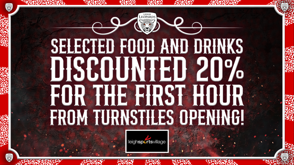In partnership with Leigh Sports Village we are delighted to share that selected food and drinks will be discounted by 20% for the first hour from turnstiles opening (excludes hospitality).
